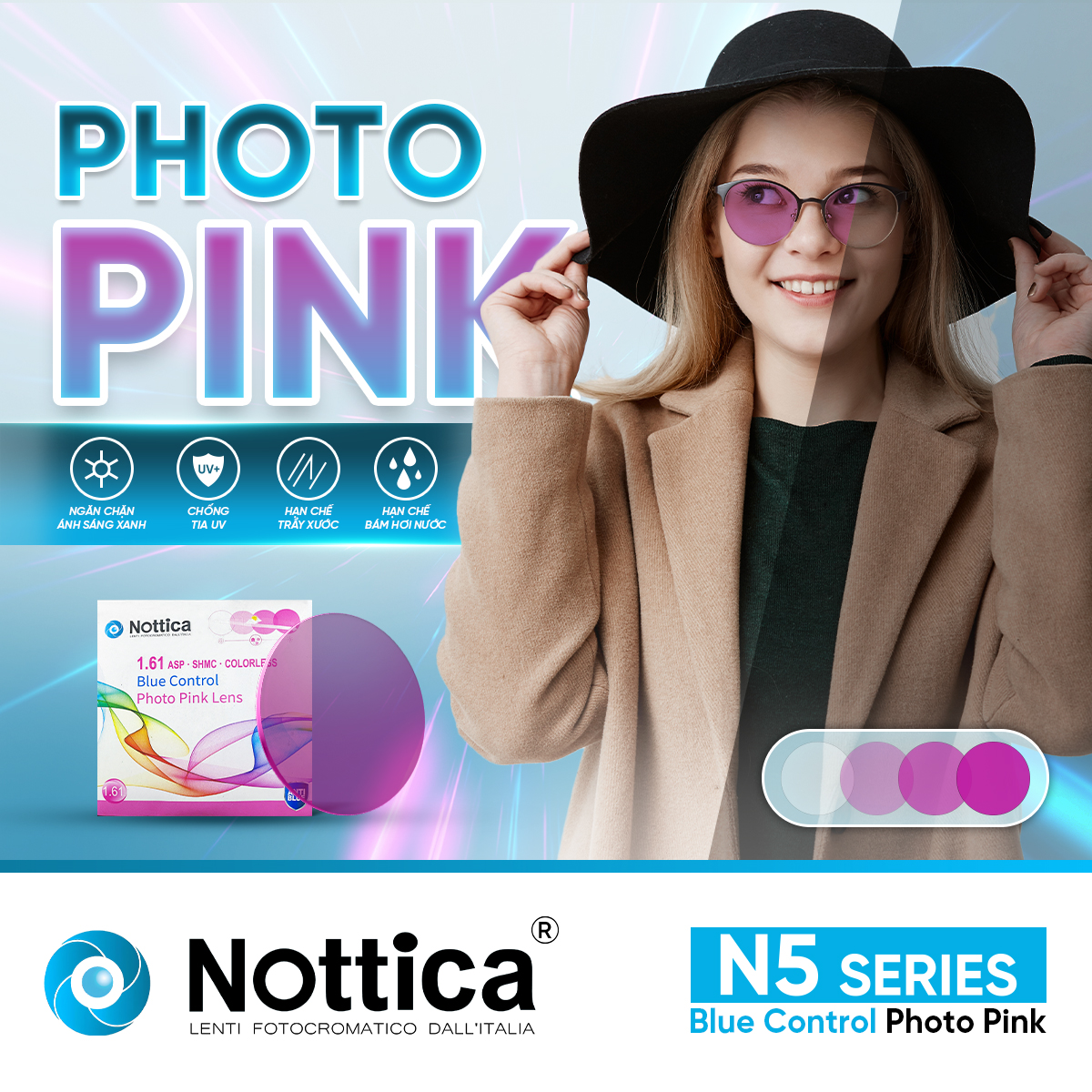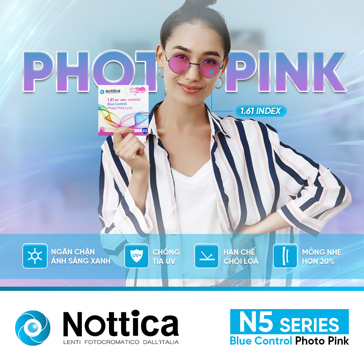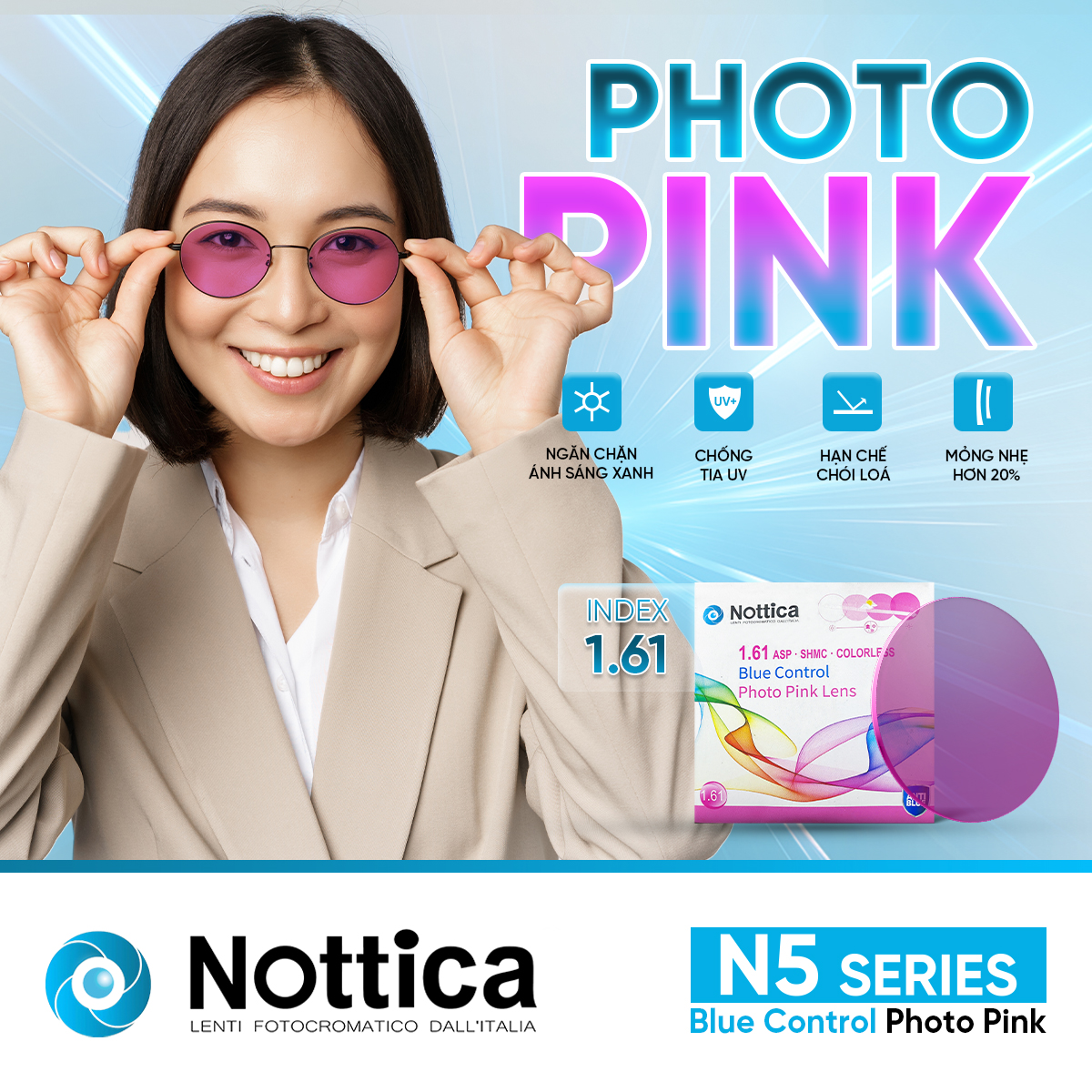 NOTTICA N5 1.61 ASP ĐỔI MÀU MÀU HỒNG – Giải pháp toàn diện khắc phục những tác nhân gây hại từ môi trường cản trở tầm nhìn của bạn: