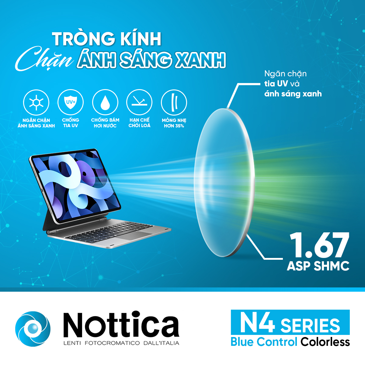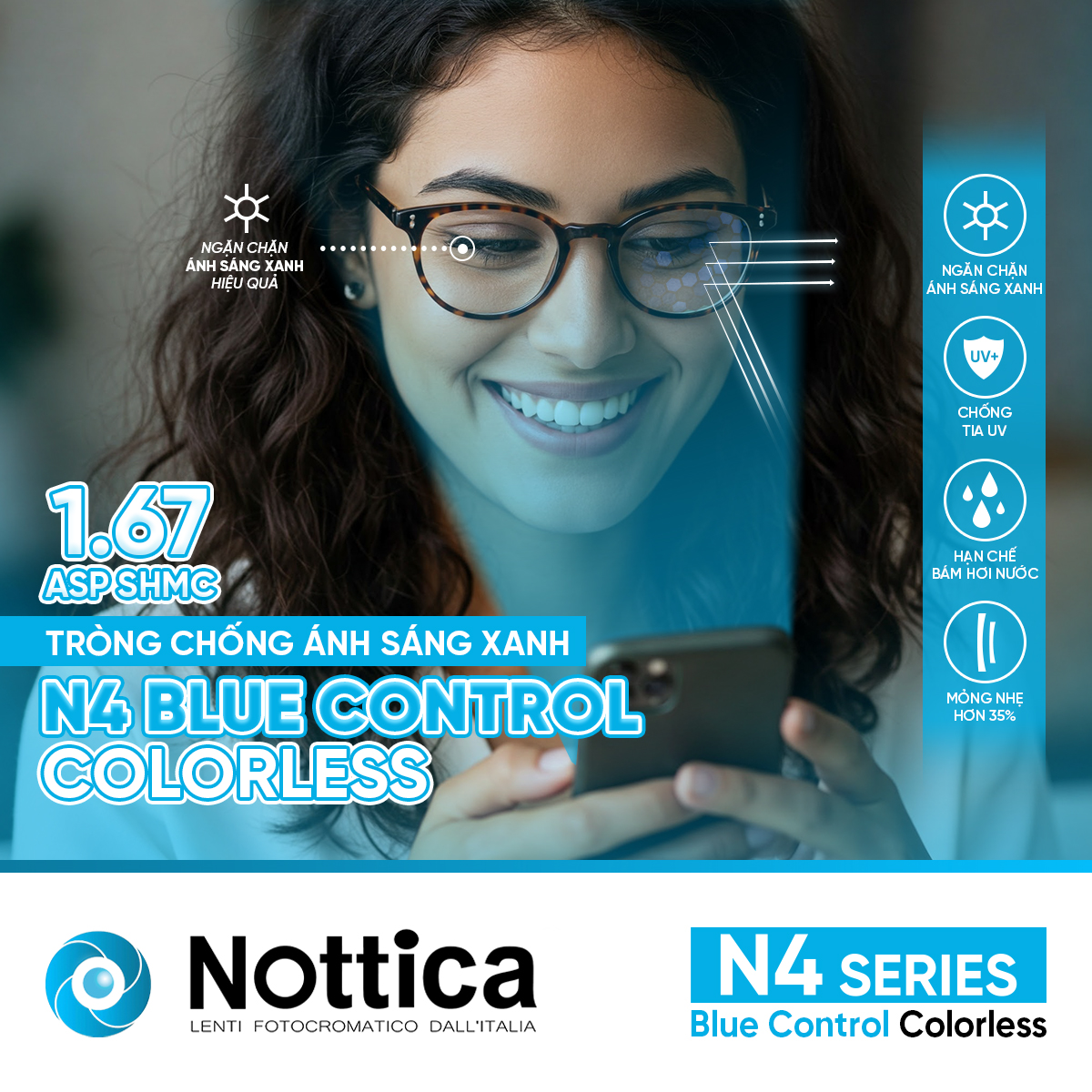 NOTTICA N4 1.67 ASP BLUE CONTROL – Giải pháp toàn diện khắc phục những tác nhân gây hại từ môi trường cản trở tầm nhìn của bạn:
