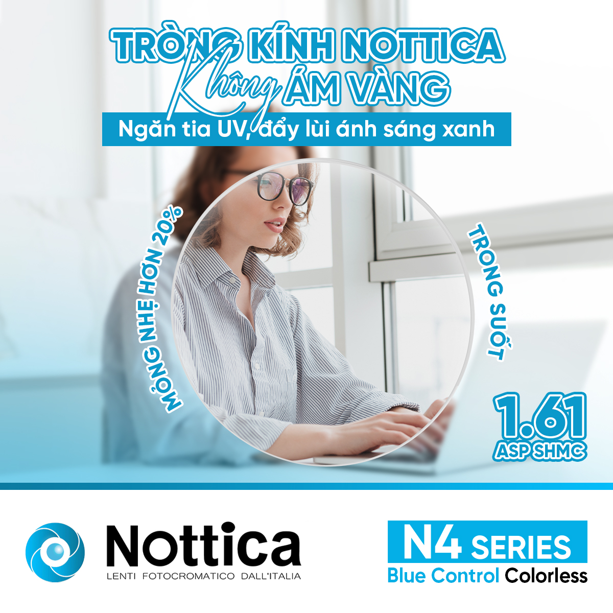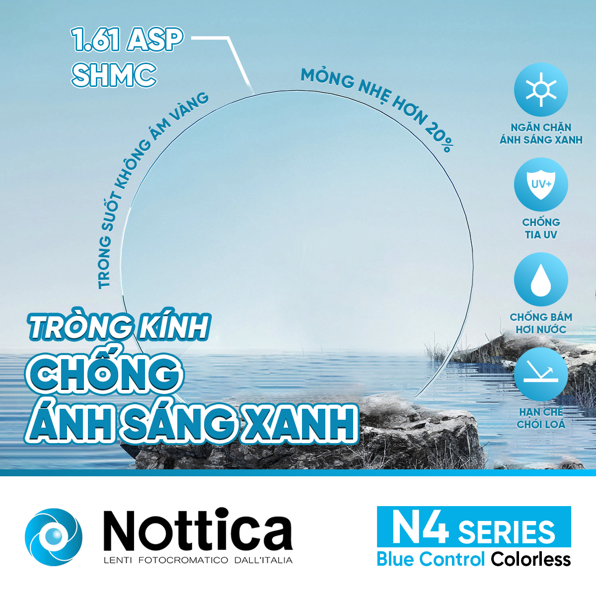 NOTTICA N4 1.61 ASP BLUE CONTROL – Giải pháp toàn diện khắc phục những tác nhân gây hại từ môi trường cản trở tầm nhìn của bạn: