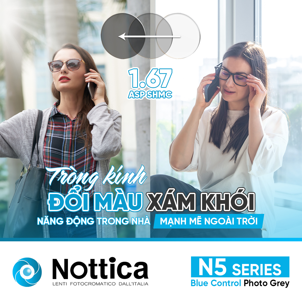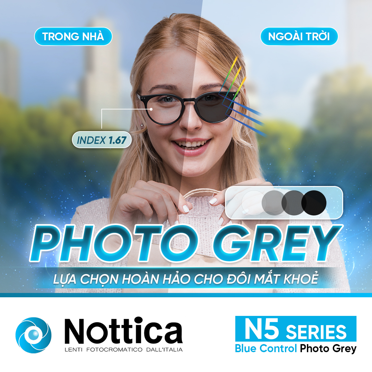 NOTTICA N5 1.67 ASP ĐỔI MÀU KHÓI – Giải pháp toàn diện khắc phục những tác nhân gây hại từ môi trường cản trở tầm nhìn của bạn:
