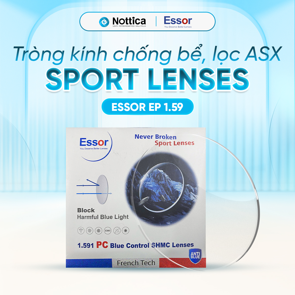 Essor EP Polycarbonate Series – Chống bể, chống ánh sáng xanh, đổi màu khói